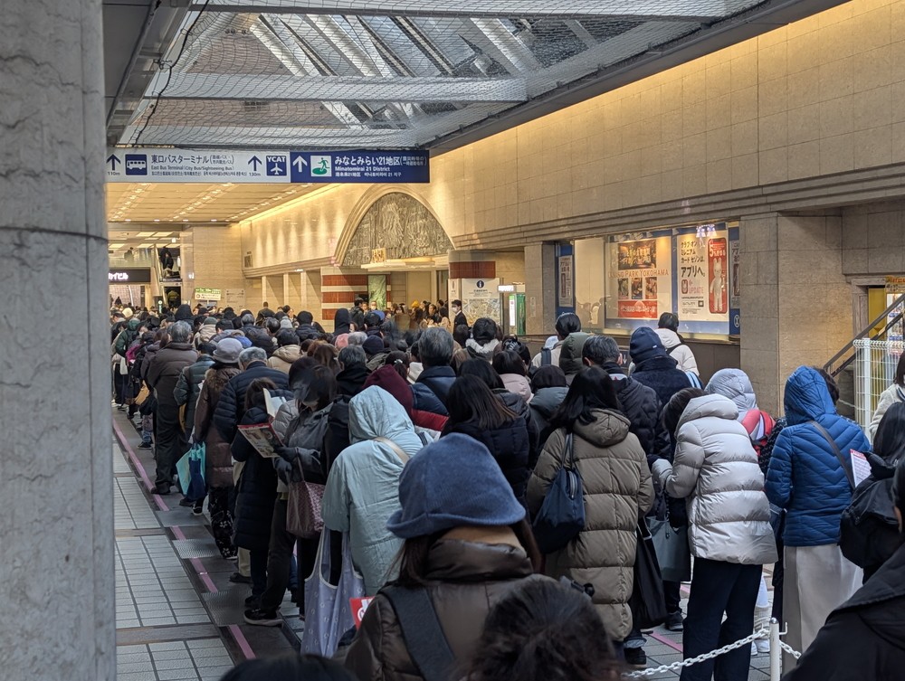 1月2日の朝8時半。ちょっと気合を入れて横浜駅に到着したんですが、例年のような「駅の改札まで続く、どこが最後尾かわからない行列」は姿を消していました。少し拍子抜けしましたが、それでも有名ブランドの整理券配布エリアには、しっかりガチ勢の皆さんが並んでいましたよ。マスコミのカメラも結構入っていて、不意にテレビに映り込まないか冷や冷やしながら列に加わりました。
